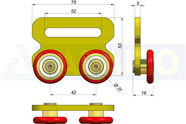 CARRIAGE RED ROLLER 75X53MM