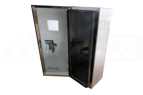 • Stainless steel fire extinguisher box for one 6 kg fire extinguisher.