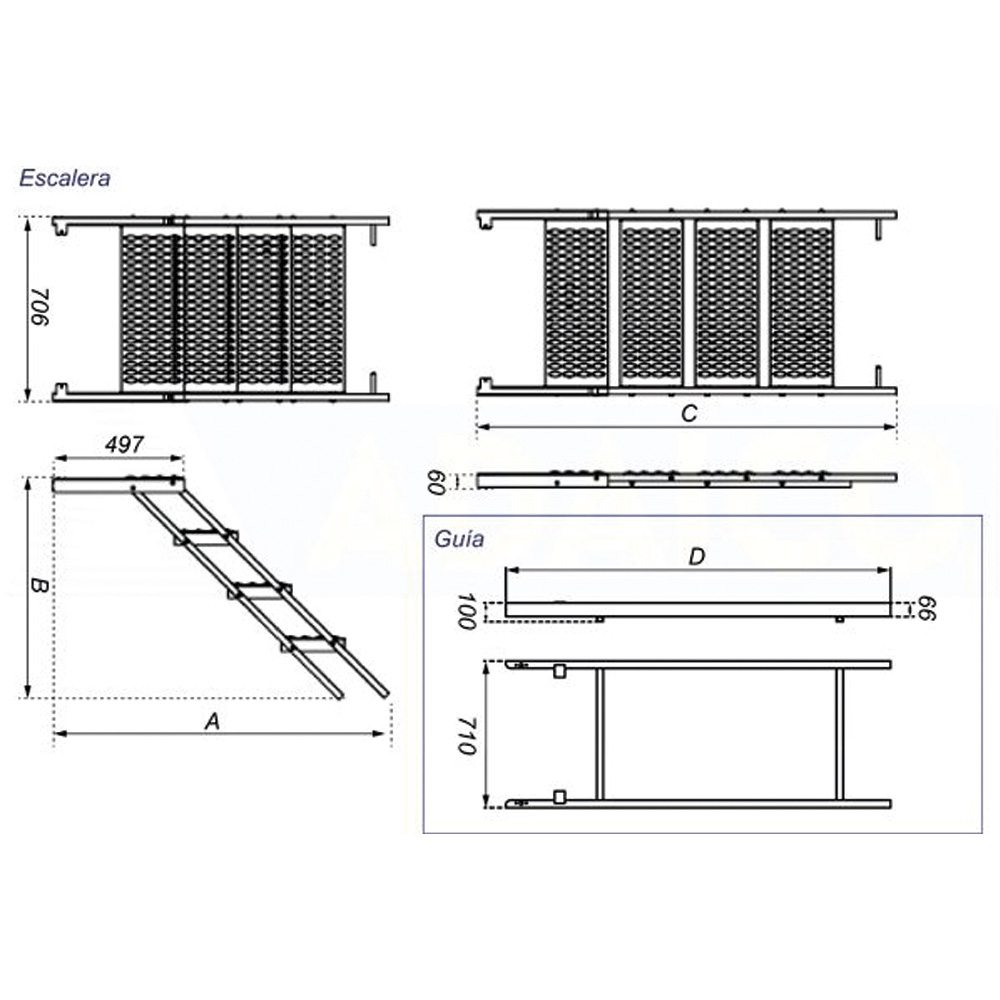• Folding ladder with sliding rails for machines and wagons. Ribbed steps ensure a non-slip and grippy surface. 6 steps.