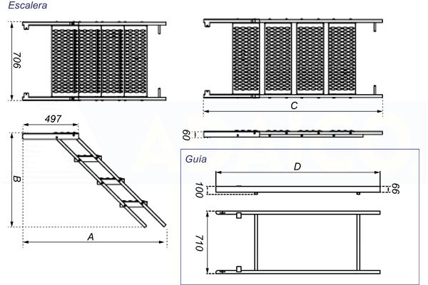 • Folding ladder with sliding rails for machines and wagons. Ribbed steps ensure a non-slip and grippy surface.
