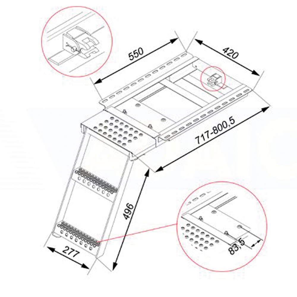 • Steppingladders with two steps and stepping level. Perforated stepping surface for extra grip.