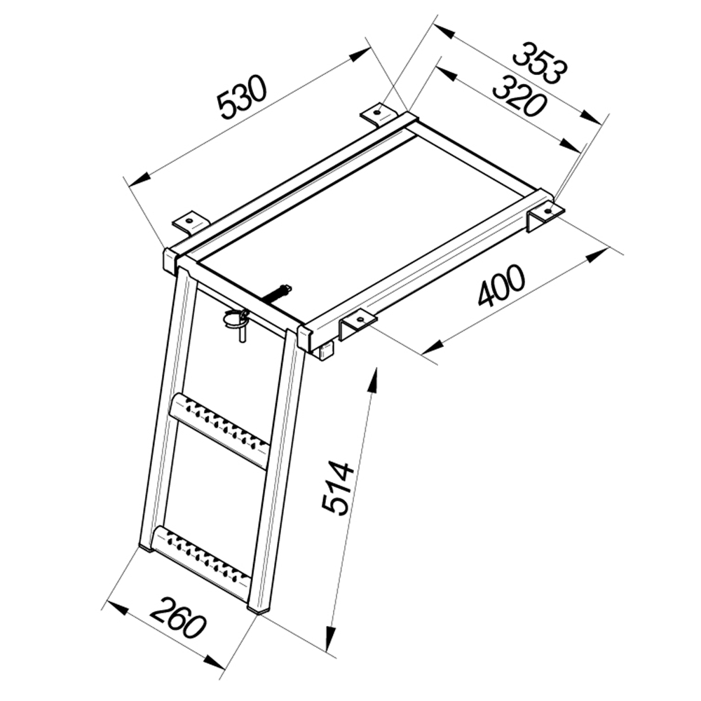 Folding ladder 514x353 mm, 2-steps, ZN