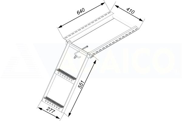 • Hinged folding ladder with two steps. The perforated stepping surface provides extra grip.