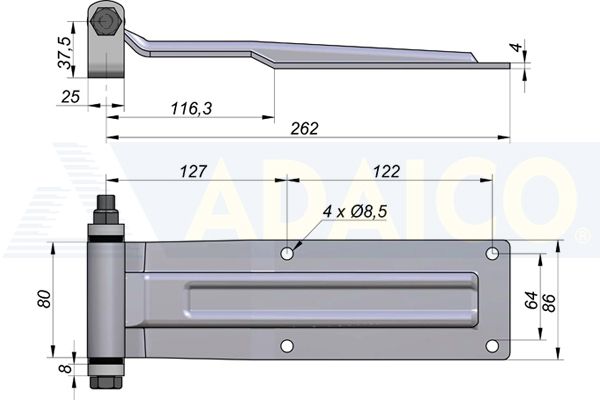Rear hinge 270x86, ZN