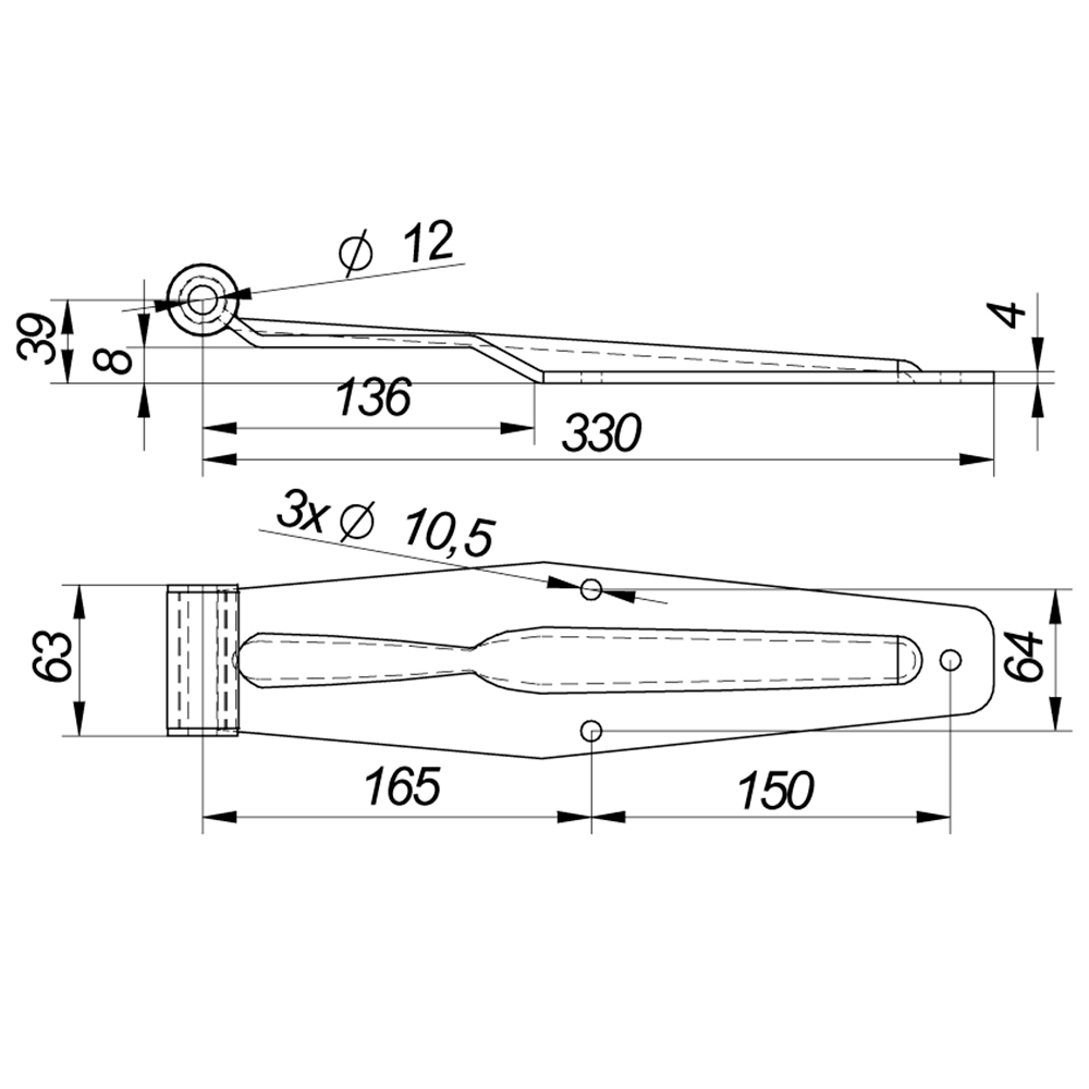 Rear hinge 330x63 Ø12, ZN