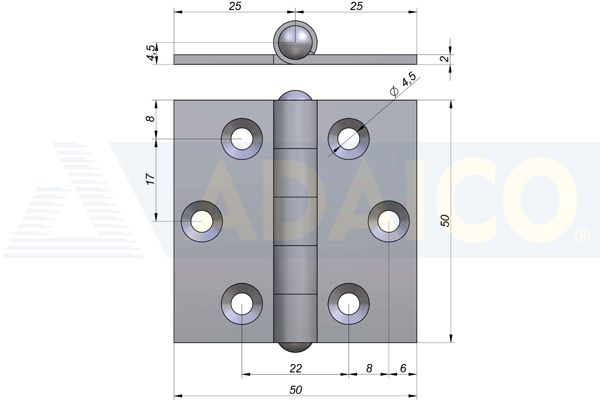 Side door hinge 50x50 E=2, SS