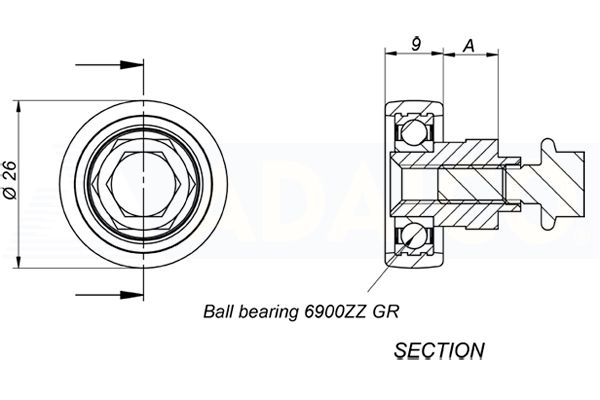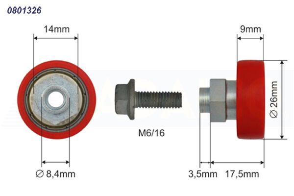WHEEL Ø26X6X9 RED NYLON BOLT M6/16 M8