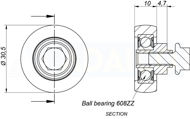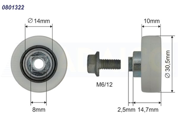 WHEEL Ø31X10 WHITE NYLON BOLTM6/12 M8