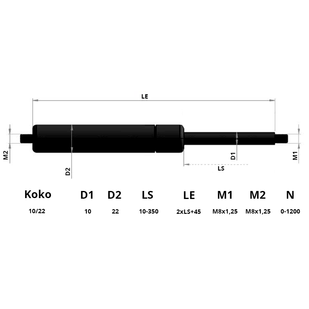 Kaasujousi työntävä 200/60 450N