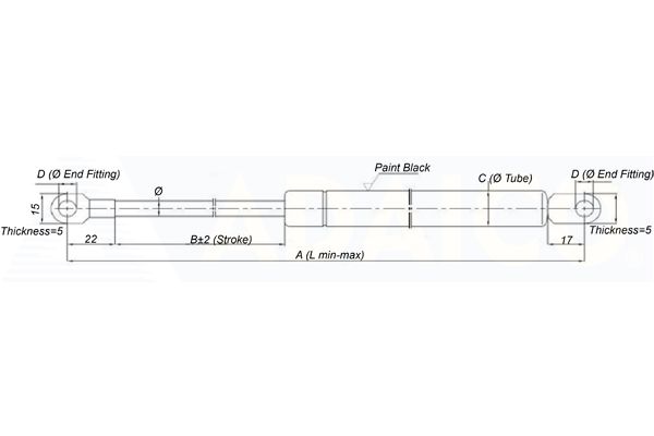 Kaasujousi työntävä 491/296 450N