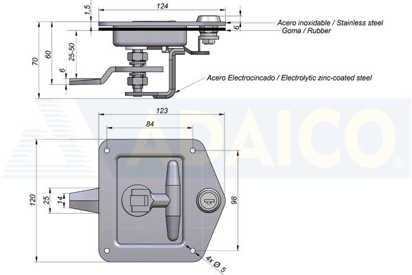 Laatikon lukko, säädettävä, RST, sinkitty