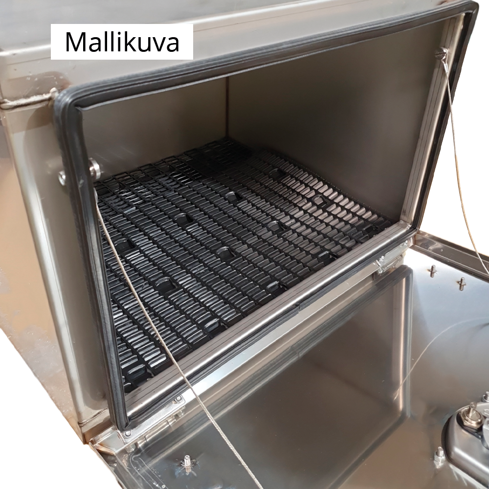 • HD-polyeteenistä valmistettu työkalulaatikon pohjalevy pitää laatikon ja työkalut siistinä. Pohjalevyn ritilä päästää hiekan, pienet kivet ja muut roskat läpi laatikon pohjalle, jolloin työkalut ja tarvikkeet ovat siististi alustan päällä.