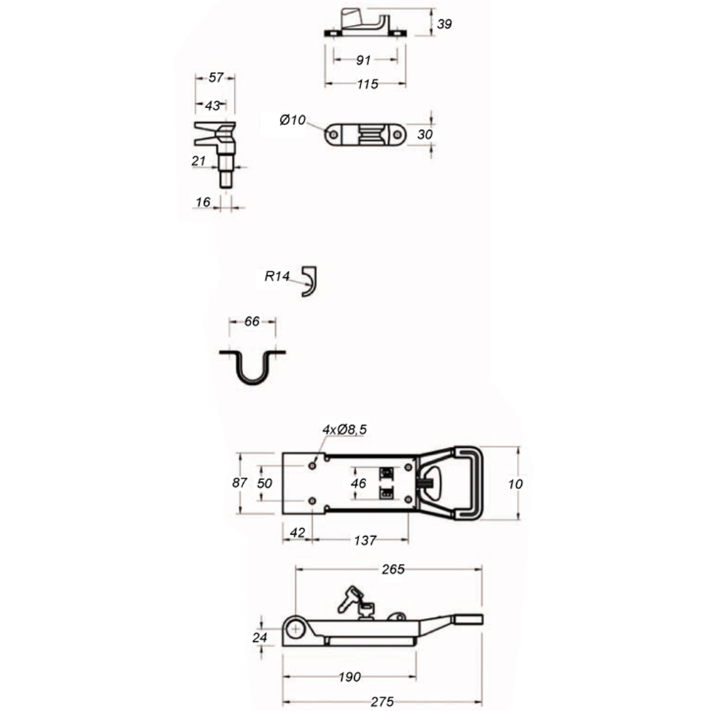 Lukkosarja 27 mm ZN 275 mm painokahvalla