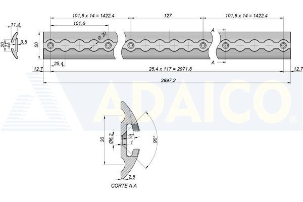 Sidontakisko Aero 3000x50x11,5, alumiini