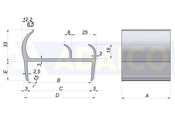Tiivisteprofiili 3m x65x52 PVC